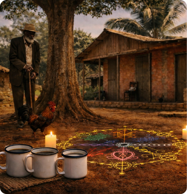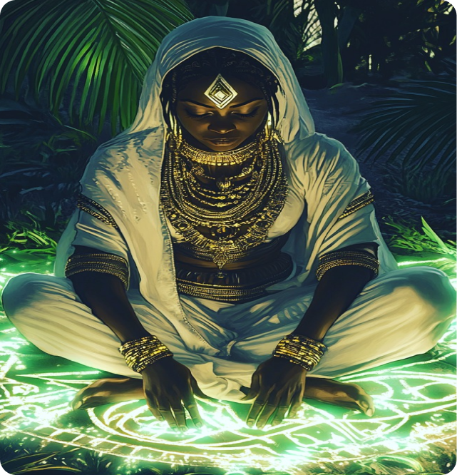 The veve symbols are sacred drawings used to invoke the Lwa, the spirits who guide, protect, and empower us. Each veve is a doorway between worlds, a call to the divine.