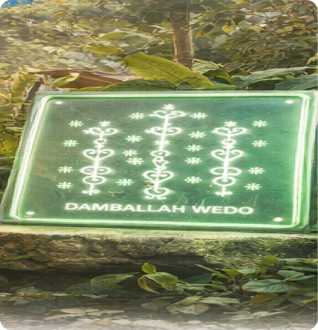 Where ancestral wisdom meets modern expression. Handcrafted neon veve symbols honoring the Lwa, bringing sacred light into your sacred space.
